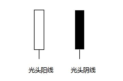 1. 光头阳线和光头阴线。这是没有上影线的K线,当收盘价或开盘价正好与最高价相等时,就会出现这种K线。如下图