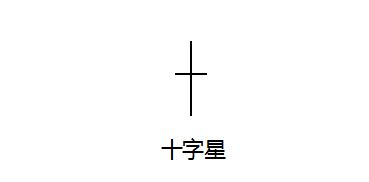 4. 十字星。当收盘价与开盘价相同时,就会出现这种K线,它的特点是没有实体。如下图