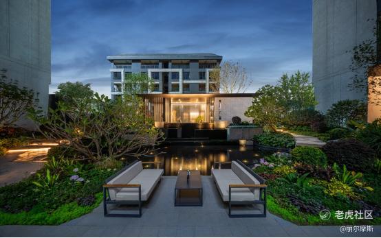 走进青岛春江天越,曲水流觞,香径徘徊,步移景异,蕴涵东方风雅的诗意空间让人赏心悦目。漫步于景观廊架,临水、品茗、赏景,花草斑斓,五重植物景观搭配于层峦叠嶂中,园内黑山墨石、潺潺叠水等景观随处可见,惬意且雅趣盎然。