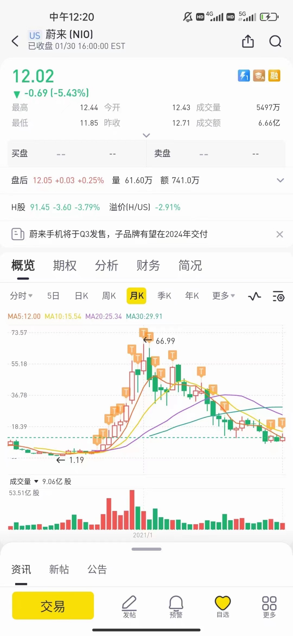 20年在和朋友的交流中了解到蔚来的股票,然后随之3美刀左右买了进去,中间起起伏伏,买进卖出,一直拿到60,其中买的期权涨了接近50倍,投资至今3年多一些,蔚来总体收益率大概30倍。劝解大家的是,拿好正股,坚定持有。