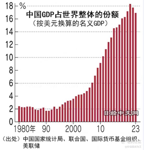 从GDP来看,2023年我国达到了17.89万亿美元,美国预计为27.5万亿,中国是美国的65%,占世界GDP的比重约16.9%,应该说,我们打个感冒,世界怎么也得颤一颤吧:
