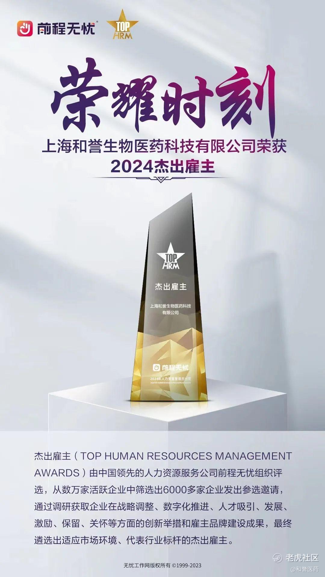 新年伊始,和誉医药喜获前程无忧“2024杰出雇主”称号!