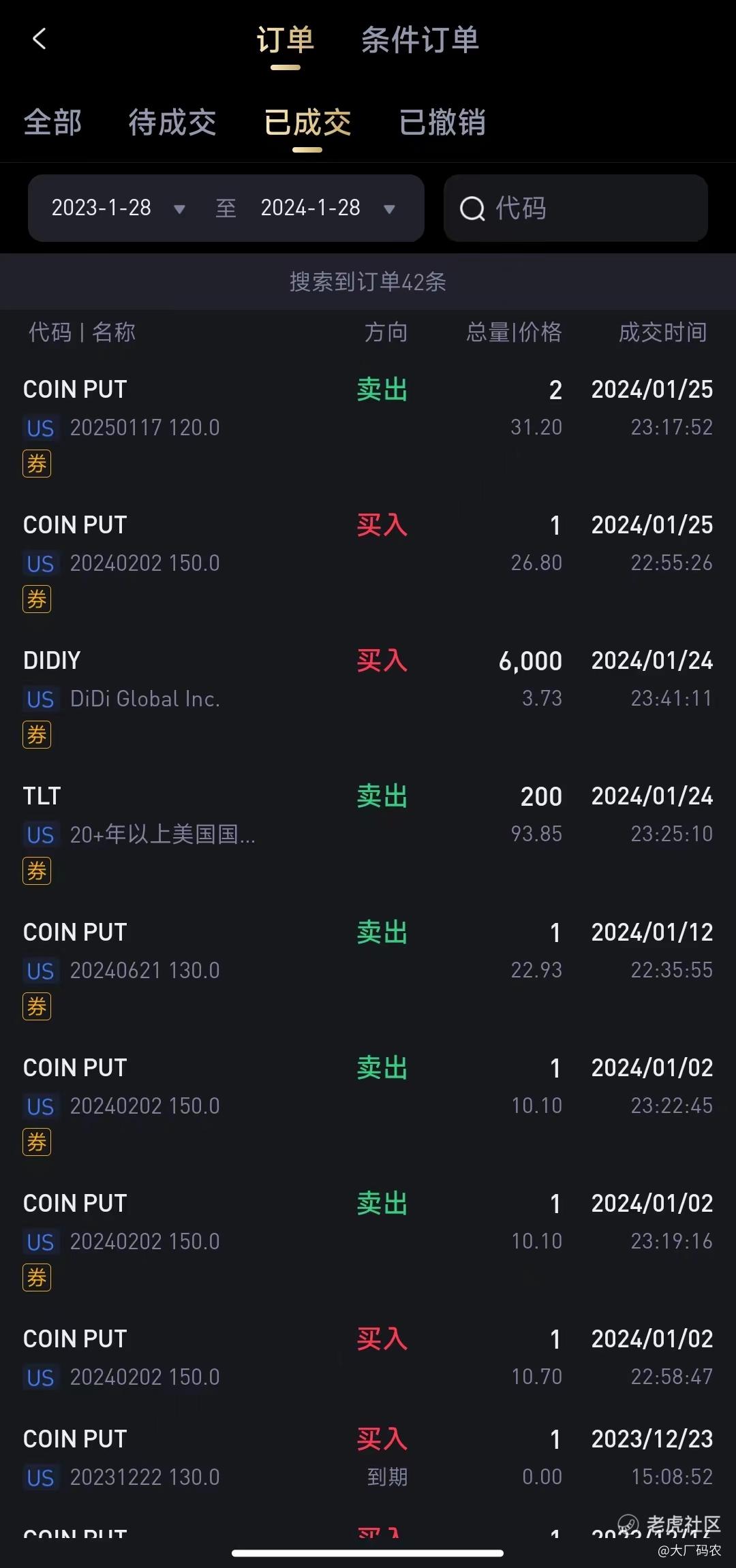 本周有两个操作,一个是卖出了TLT,换成了滴滴,再一个是将COIN $Coinbase Global, Inc.(COIN)$ 2月2日到期的PUT期权进行了展期,后面会具体说下这两个操作