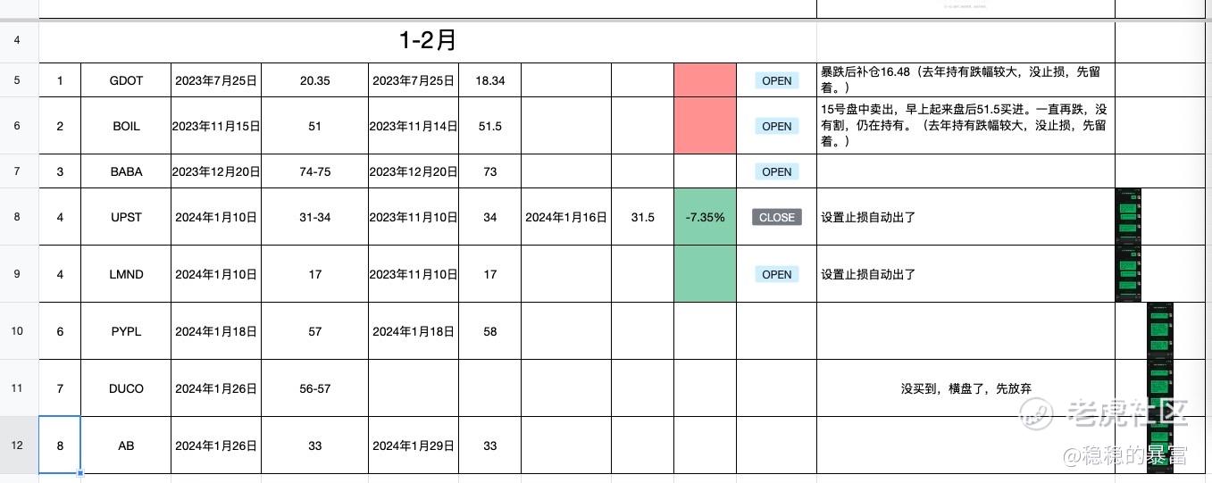 其余去年剩余的gdot和boil亏损了50个点,现在还留着,表格顺位到2024年。$Unity Software Inc.(U)$ $Roblox Corporation(RBLX)$ $美国超微公司(AMD)$