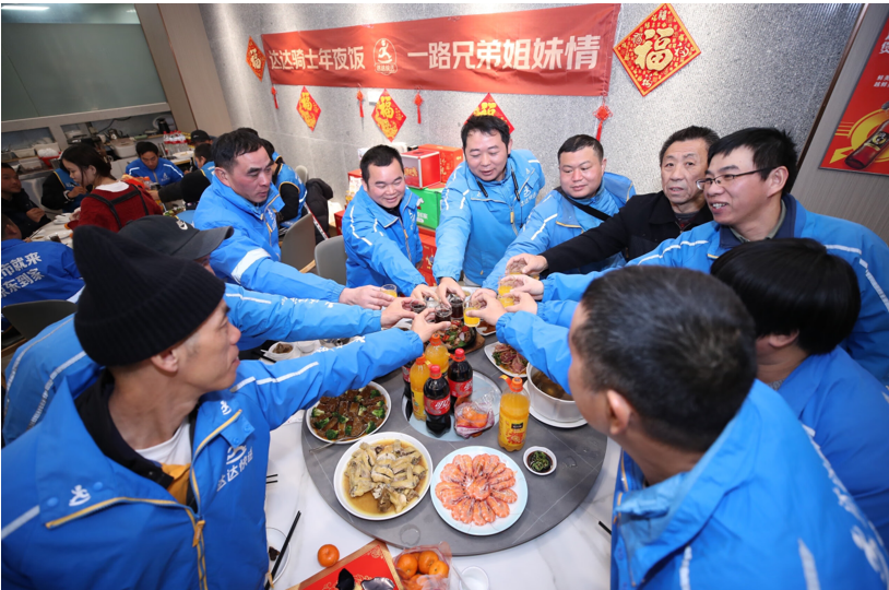 “大家辛苦了,感谢大家一年来的付出。”在北京、上海、广州等多地的骑士年夜饭现场,伴随一声声感谢,骑士们举起杯一饮而尽,骑士们与达达快送、京东小时达的工作人员们一起,分享着一年来的辛苦与收获。