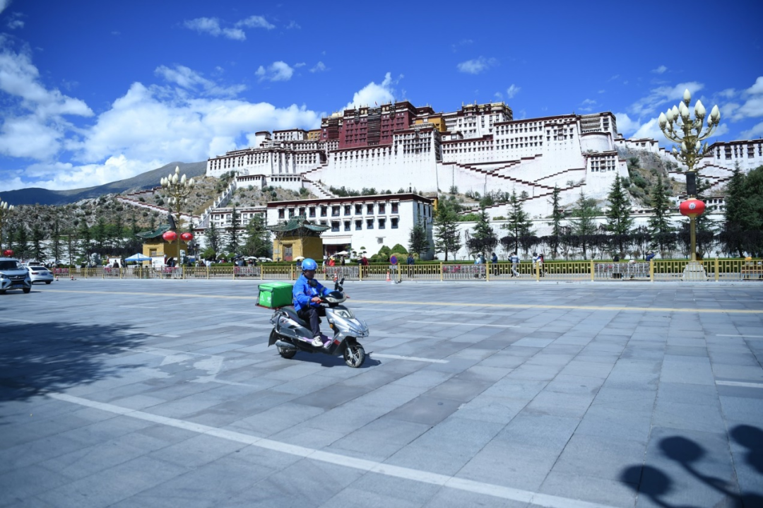胡贵福在送单路上驶过布达拉宫