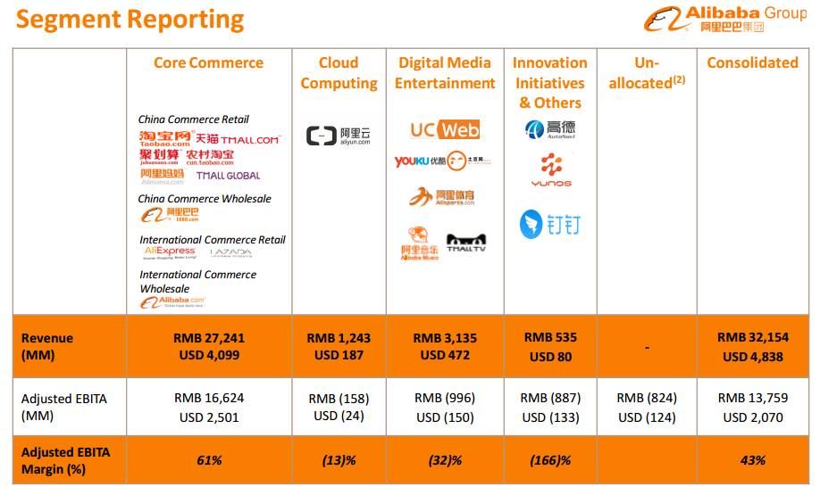 3位猛将:云服务、数字媒体及娱乐、创新业务及其它还在大哥电商业务的补奶下磨刀霍霍(息税前利润率分别为-13%,-32%,-166%)。