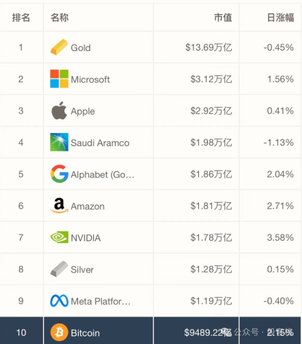 昨天还一个新闻刷爆了全网,就是大饼的市值重回全球前10.这其实是一个很重要的信号。(第四名是沙特石油公司,可以理解成石油市值的一部分)
