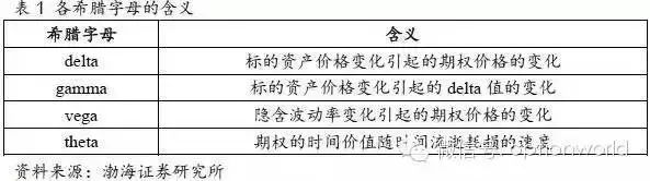 分析单个因素变化对期权价格的影响较为简单,然而,实际情况往往是多个变量同时发生变化,在它们的联合作用下,分析期权价格的变化会变得十分复杂。这时,引入“希腊字母”这一量化分析工具是十分必要的,尤其当投资组合中包括多个期权头寸时,通过“希腊字母”我们能更为直观、全面地评估投资组合的风险暴露。下面我们将对这一工具加以介绍。