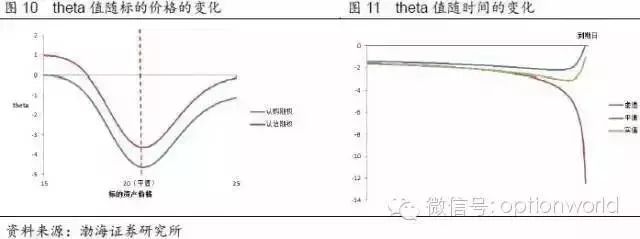 theta为期权价格对时间的一阶导数,表示随着到期日的临近,期权价格的变化。theta通常为负,即随着到期日的临近,其他条件不变的前提下,期权的价格是下降的,这成为期权价值的“时间衰减”(time decay)现象。
