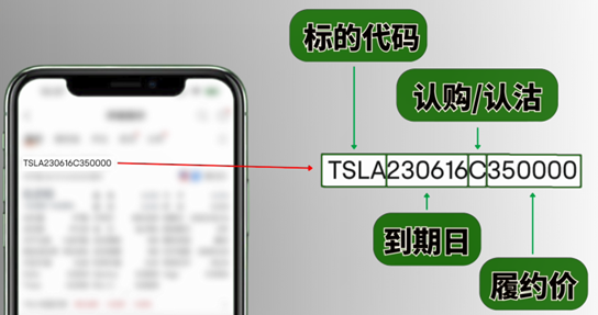 在下单购买期权合约或查看持仓时,通常有四项关键信息会依序显示:标的代码、到期日、认购或认沽以及履约价,常见的显示方式如下图。