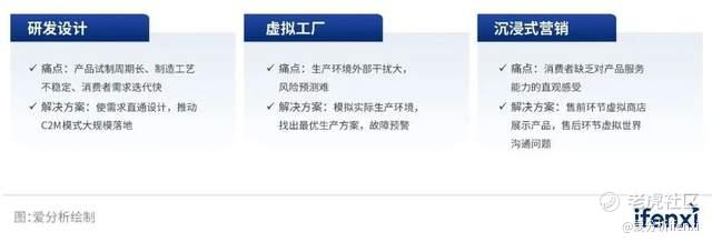 随着制造业进入存量发展时代,以及消费市场的升级与变革,传统大规模、批量化的生产方式已不能满足个性化的消费需求,精益生产逐渐成为刚需。要实现精益生产面临着诸多难题,例如工业产品的试制周期长、制造工艺不稳定、消费者需求迭代快等。工业元宇宙的出现使得消费者需求直通产品设计,未来有望推动C2M模式的大规模落地。工业元宇宙以低成本优势对产品的功能、零部件的作用方式、消费者体验等反复进行测试,将产品性能信息和消费者购买信息实时反馈给品牌商、研发机构、生产制造商等,以帮助策划出更能迎合市场的产品。
