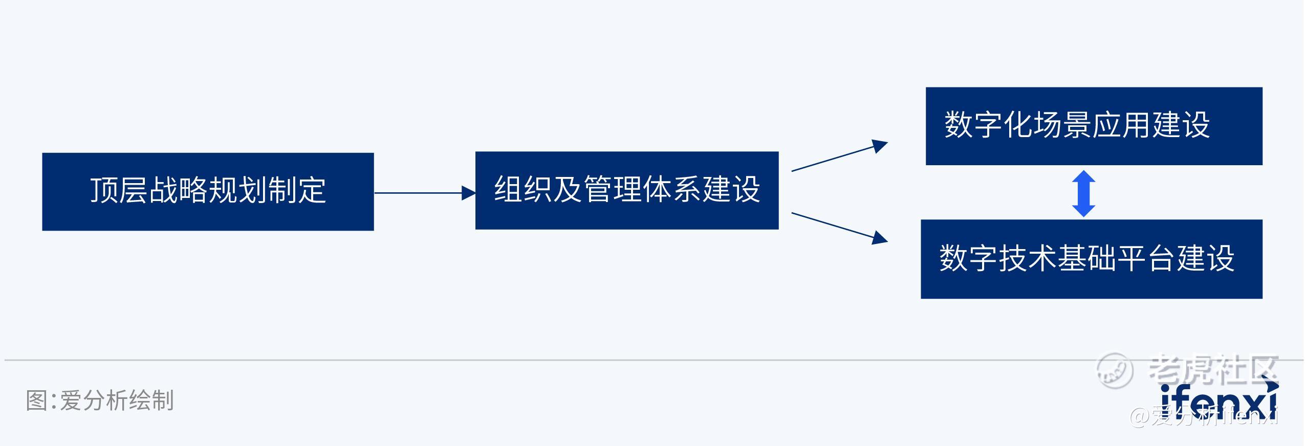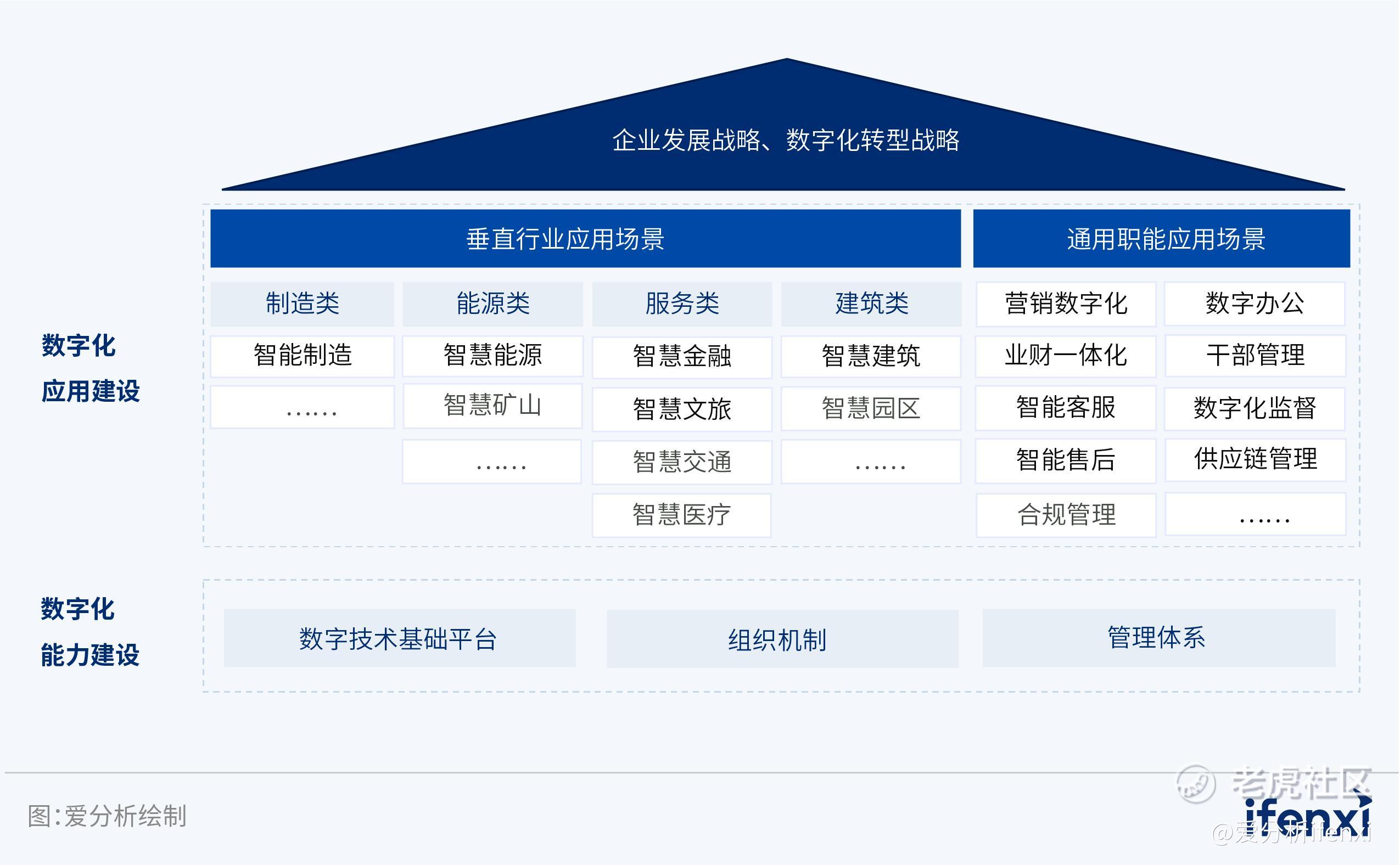 央国企普遍具有规模大、体系复杂、下属企业数量多等特点,其数字化转型并非只是局部数字技术的简单应用,而是业务、技术、组织、管理等多方面的整体协同,需要在清晰蓝图指引下按照科学路径逐步推进。结合政策文件和行业标杆实践经验,爱分析认为,央国企应该从数字化能力建设、数字化应用建设两方面推动转型发展,并且两者需要协同推进。