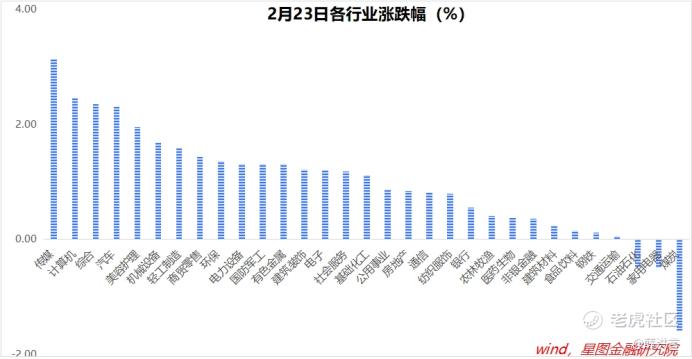 2月6日以来,计算机(26.38%)、传媒(25.09%)、通信(21.23%)、电子、国防军工涨幅靠前,均超过19个百分点。