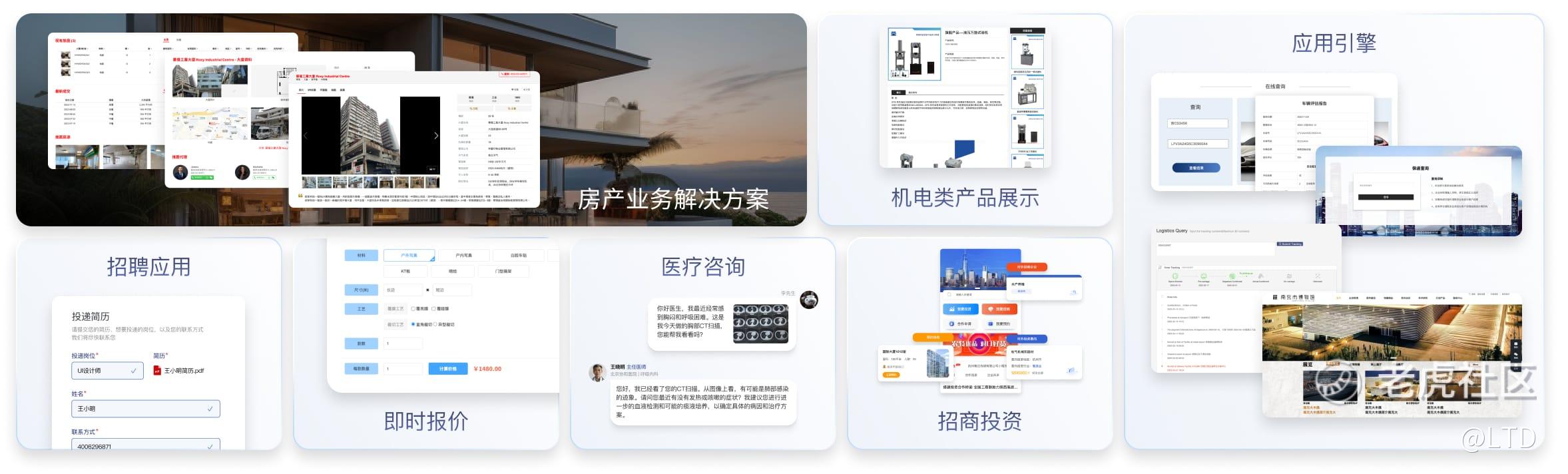 而2023年所推出的低代码应用引擎,为灵活构建这类业务应用做了一个非常好的基础,通过应用引擎,用户可以完全按照自己的业务需要构建数据字段,并利用应用引擎提供的API,结合网站编辑器和功能模块在页面上进行展示。