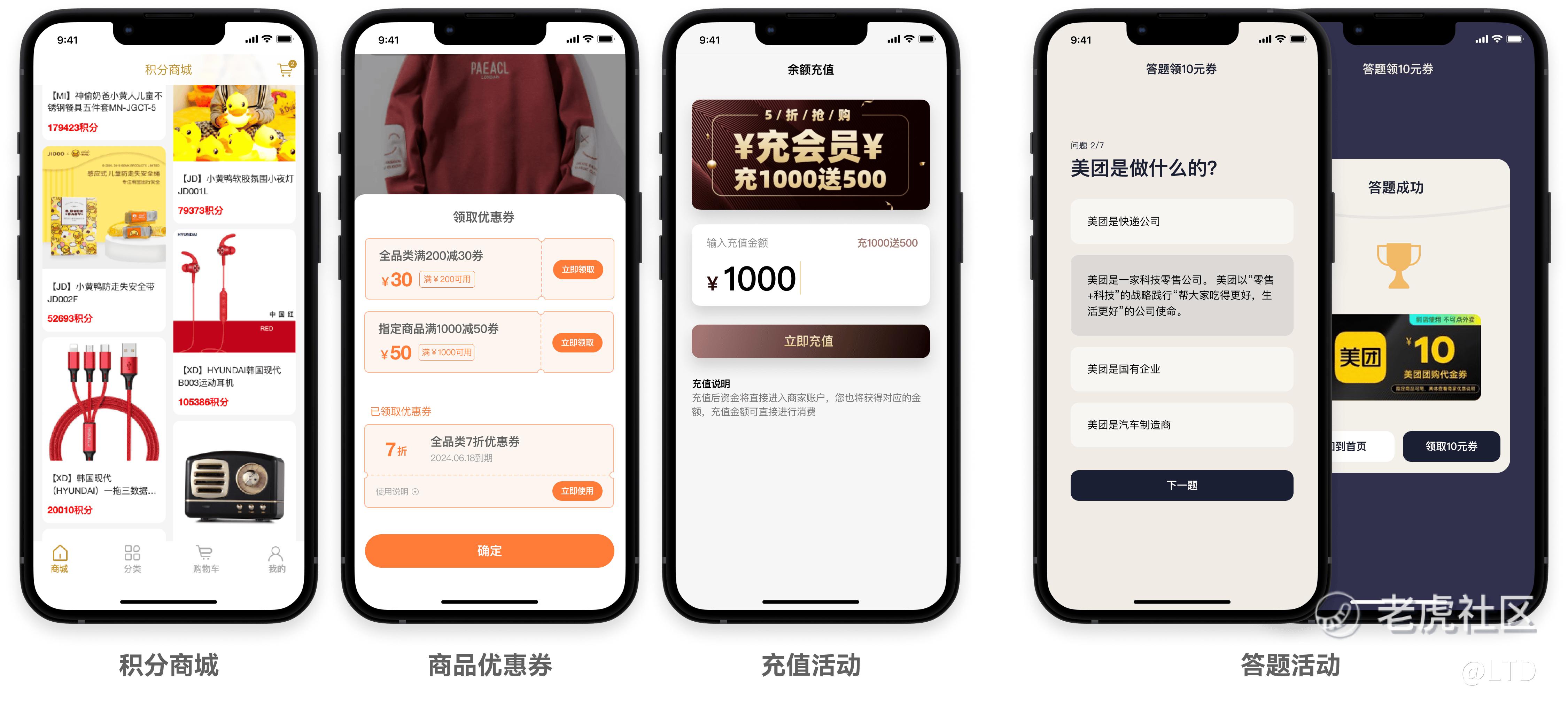 基于营销枢纽系统的商城功能,在已有比如秒杀、分销、全局优惠券等营销活动基础上,2023年度新增了比如积分商城、商品优惠券、满减/折扣优惠券、充值送积分/余额、答题领取奖励 等多种营销方式。