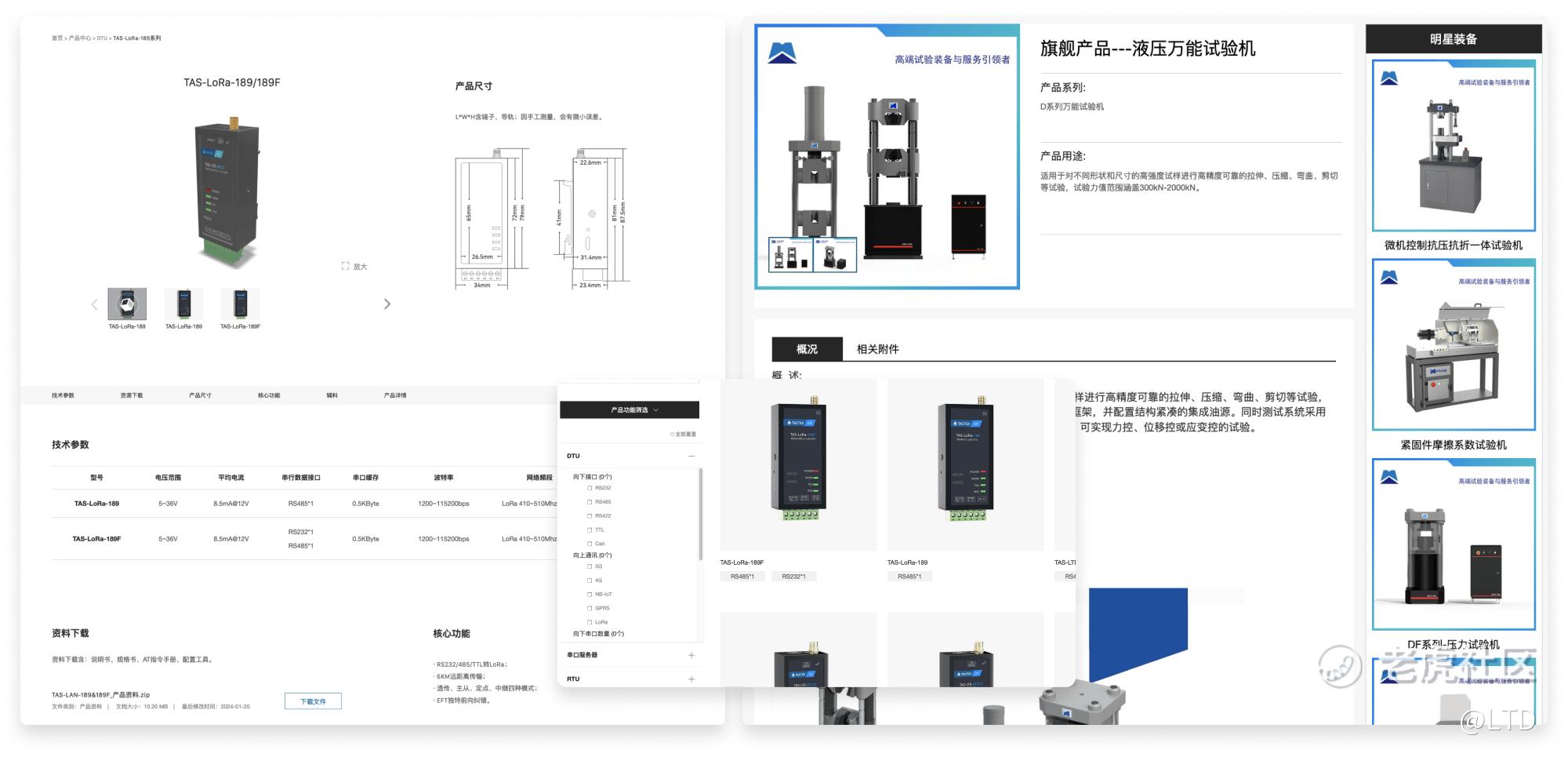 包含适合该类型的页面样式、图片/表格等富文本形式的参数展示、说明书/资料等文件下载、根据参数进行分类展示与筛选等。