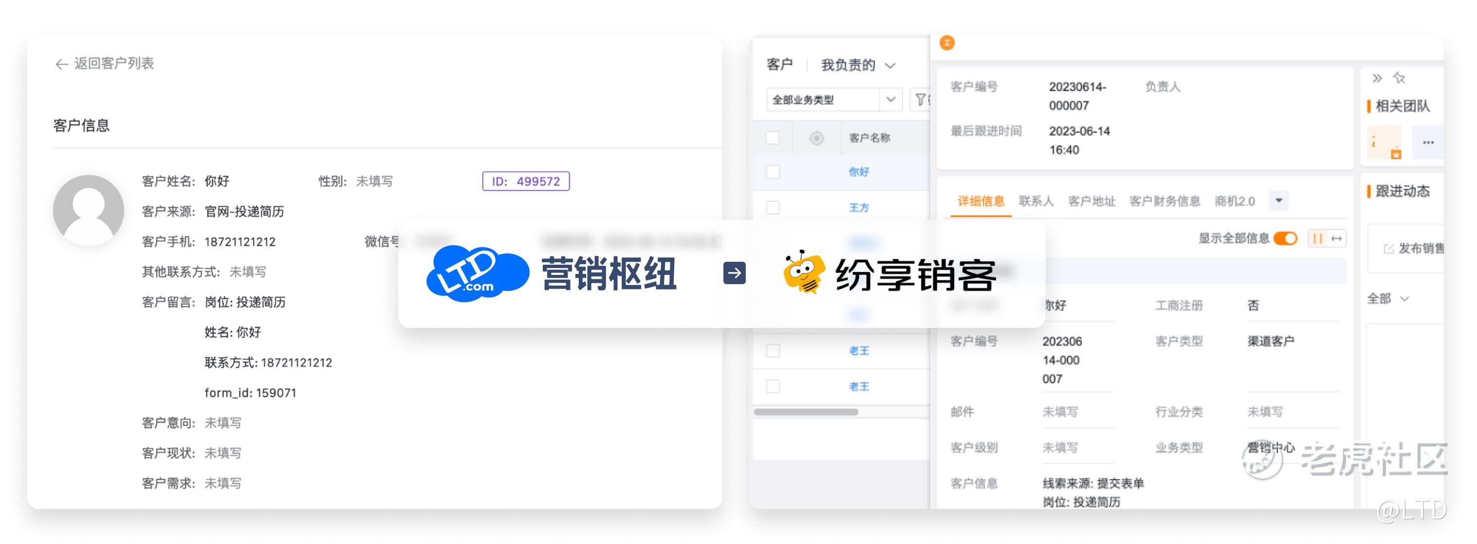 通过与外部CRM系统的对接,在基于营销枢纽进行展示生意内容、推广与获客的同时,也能让官网上获取的线索 自动推送 到业务人员已经熟悉的CRM系统中,并进行后续的业务开展。
