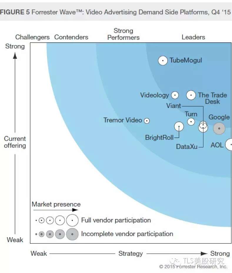 因公司团队近年来有效地执行竞争策略,其产品和同类产品相比具备较强竞争优势,TTD被市场调研机构Forrester归类为需求方平台领域的第一梯队。