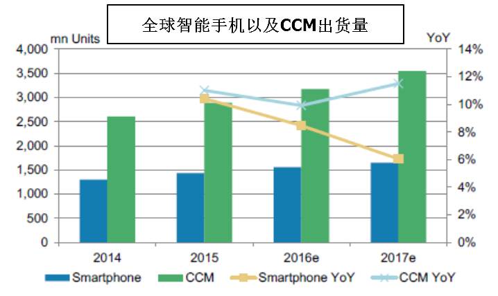 对于整个手机摄像头模块,除了纯粹的镜头外,还需要考虑的就是感应器和摄像头模组(CCM)的市场需求。