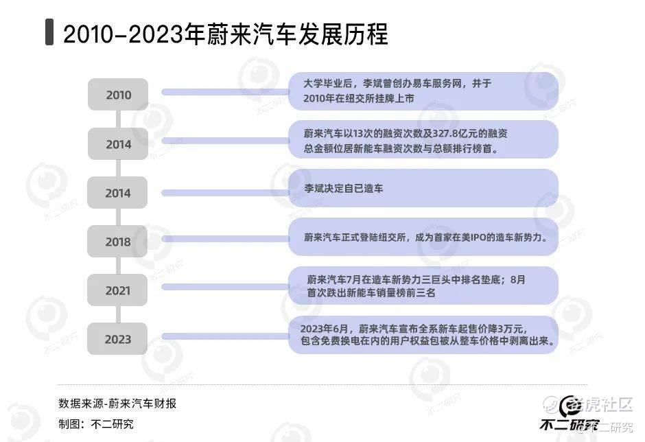 从手机、芯片到电池、充换电站、车险等领域,蔚来自身也波折不断。2023年以来,蔚来首次降价,以及采取裁员、开放换电、放弃电池制造等一系列降本增效的措施,使其置于舆论的风口浪尖。
