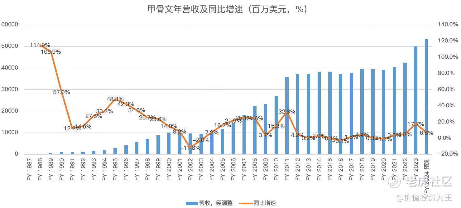 在AI大爆发之前,甲骨文的业绩多年停滞,如2012财年,公司营收为371亿美元,而到了2022财年,公司营收为424亿美元,增长十分乏力。