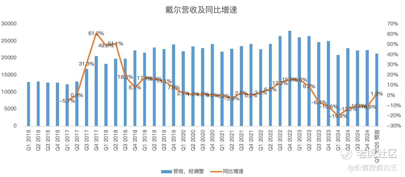 在3月初公司披露财报之后,戴尔股价曾一日暴涨31.6%,但从业绩上看,戴尔当季营收同比下滑了10.9%: $戴尔(DELL)$