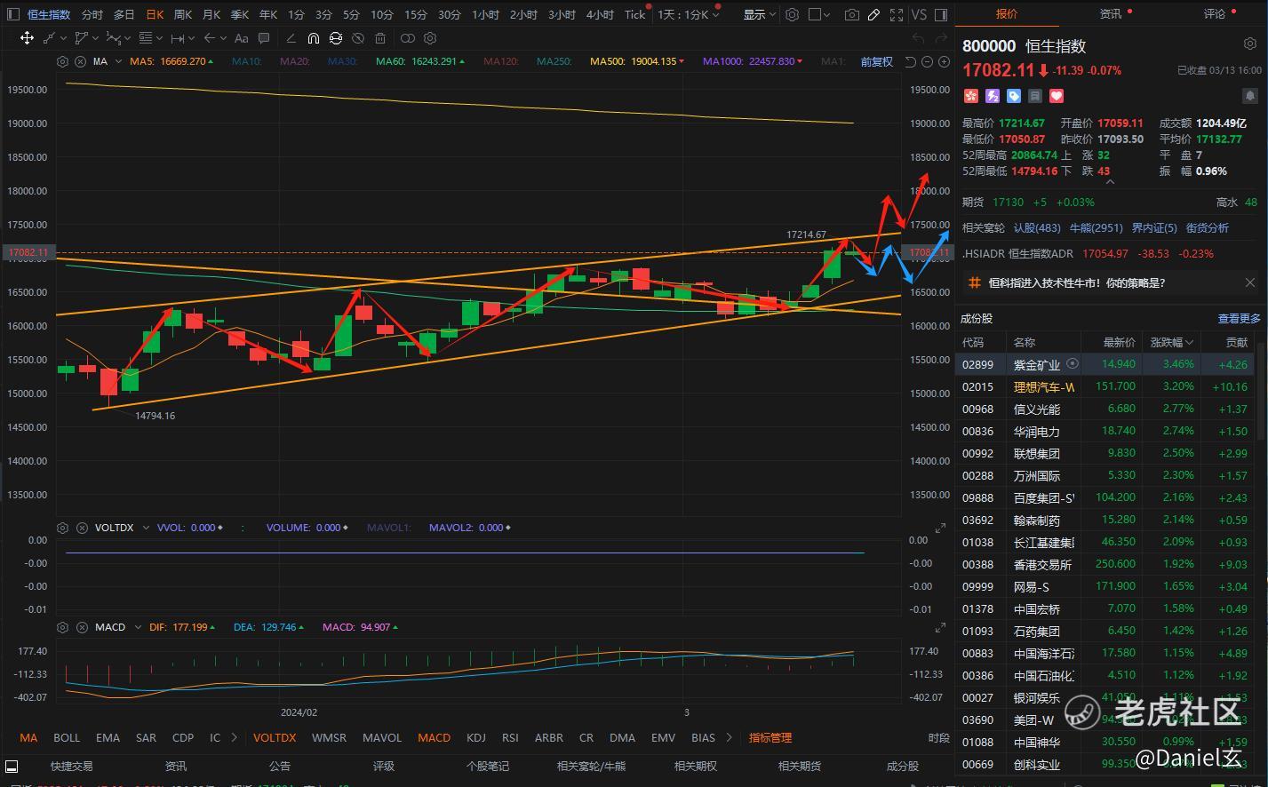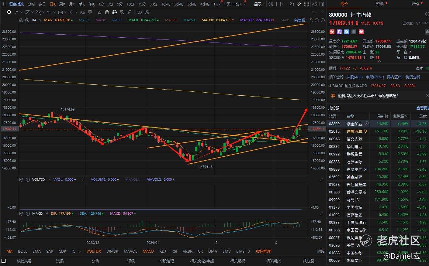 2024.03.13:恒指走出了经典的底部形态!错跌的股价都要涨回去!