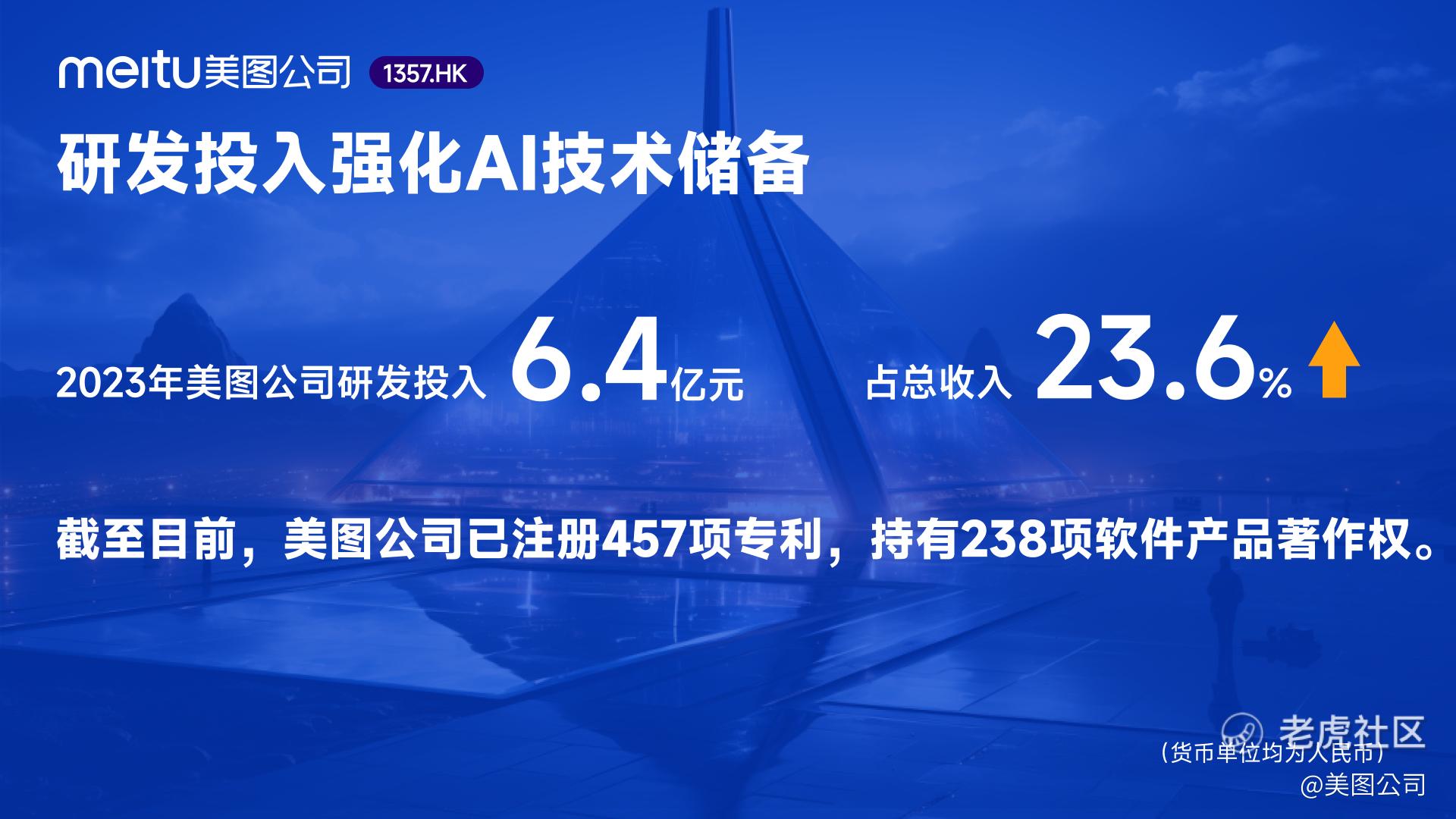 2023年,美图公司研发投入6.4亿元,占总收入的23.6%。