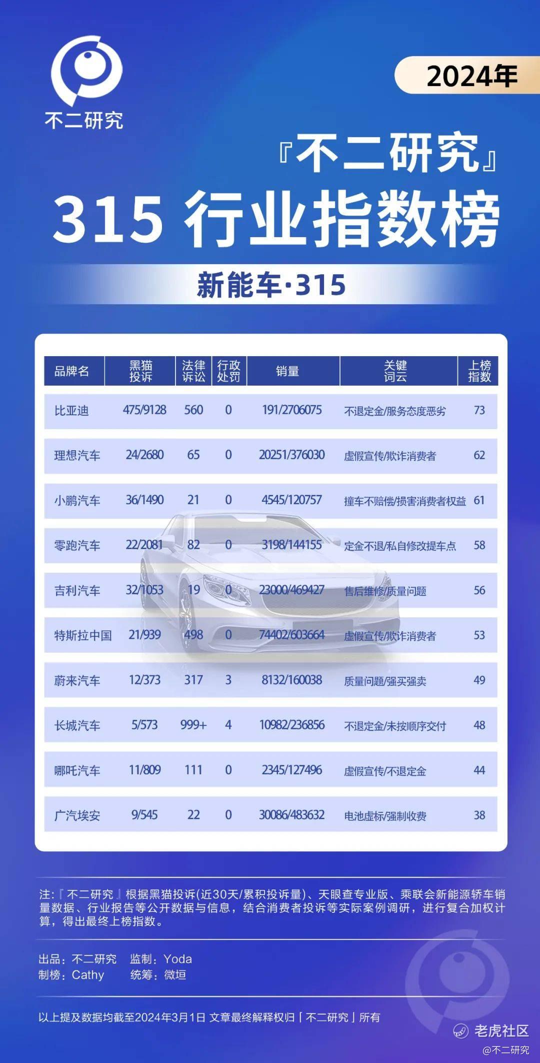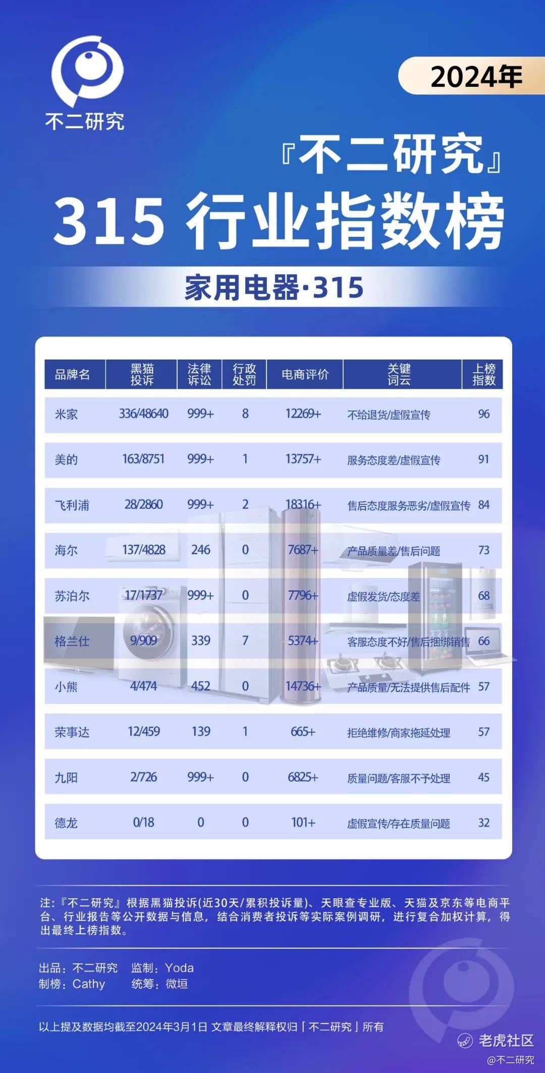「不二研究」315行业指数榜,支持消费者维护合法权益,呼吁更清朗的维权环境;另一面,期望品牌方能够以实际产品力与售后服务力,与消费者进行公平对话。