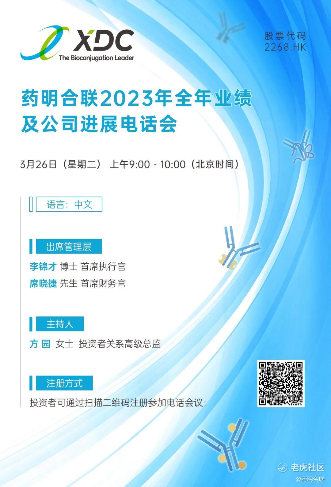 我们诚挚邀请您参加3月26日召开的药明合联2023年全年业绩及业务进展发布会。
