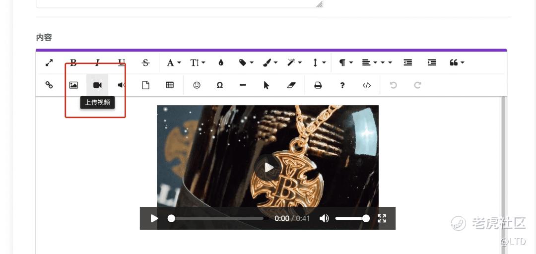 当编辑一个产品详情时,选择下图红框内的上传视频按钮,传入视频文件即可。