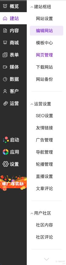 1) 优化「建站」下的二级菜单栏目