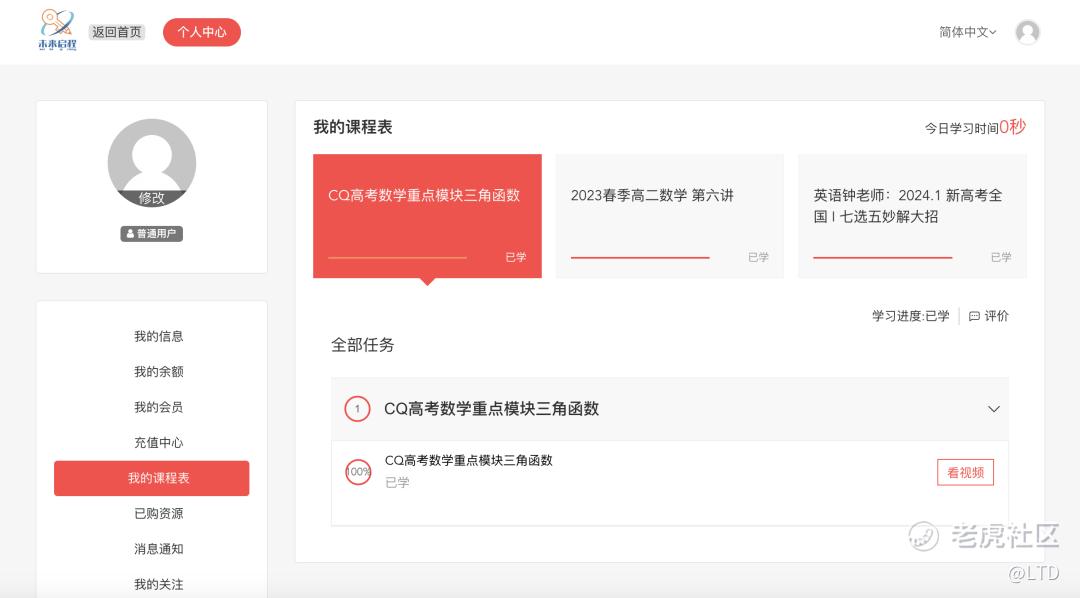 当用户通过会员中心 - 我的课程表查看课程时,如果该课程非专栏课程,下方将显示错误的数据。