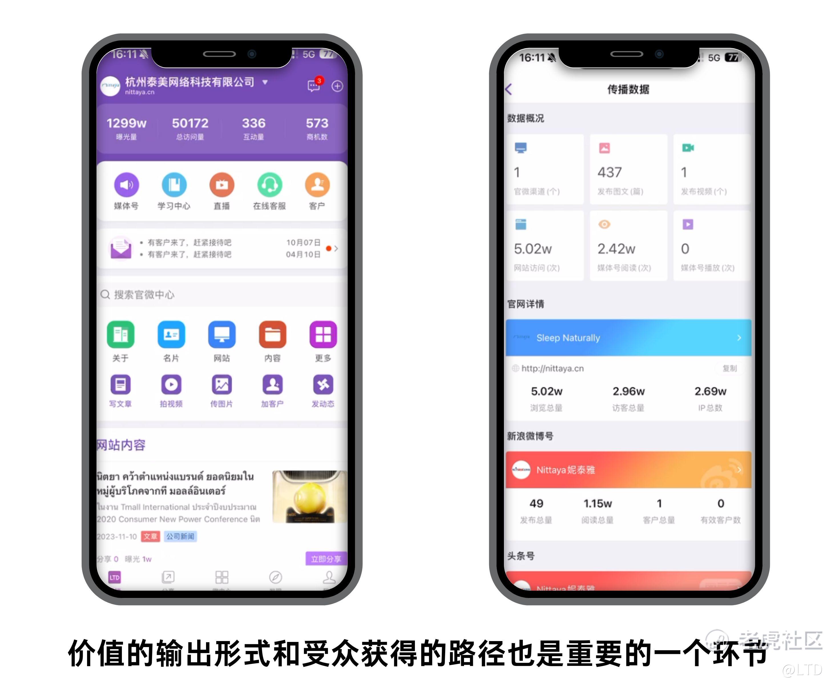 LTD营销枢纽提供各种类型的内容创作与价值传递,从引导到成交的方法论和解决方案,帮助企业进行内容营销,并通过一系列生意表达,帮助企业有效获客。利用后台的官微中心,构建优质的营销物料,包括资讯文章、视频、海报等等。将企业产品数据化表达,突出优势、服务的个性、产品的卖点,多方位呈现,让消费者了解企业,熟悉产品,从而吸引消费者的兴趣。
