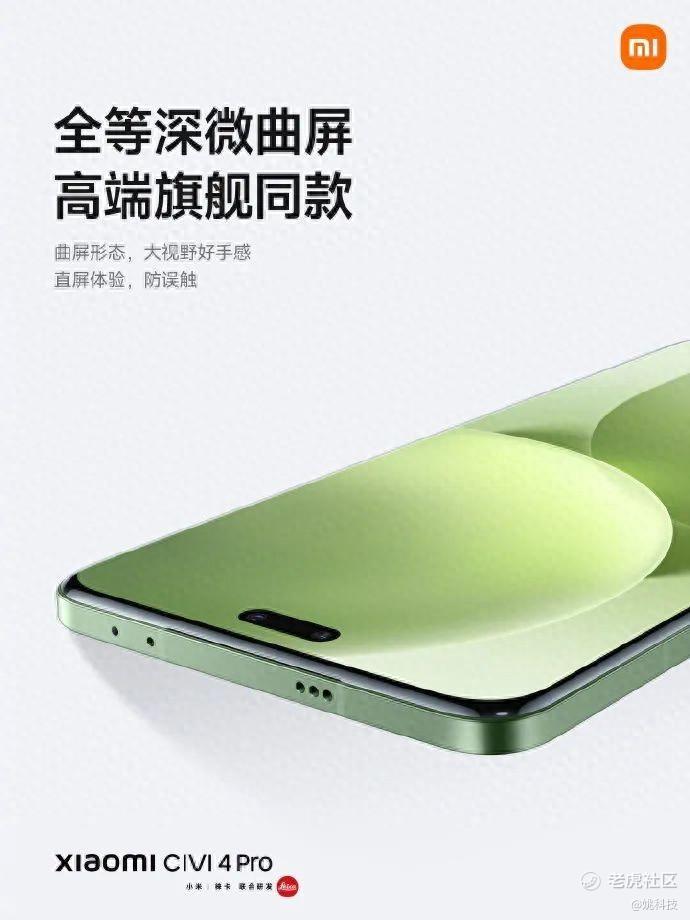 看齐小米14 Pro和小米14 Ultra等高端旗舰,小米Civi4 Pro采用TCL华星新一代低功耗C8发光材料。