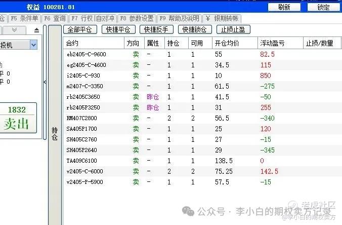 商品期权上没有新的感悟,按部就班,一切按系统信号执行。郑州和大连的2405合约快要到期,主力合约开始换月,可能又要有段时间不好做。
