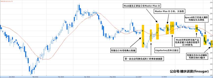 从特斯拉要收购太阳城开始,特斯拉的股价对事件的敏感程度越来越高。具体表现就是每次特斯拉的事件都让投资者充满希望,然而这三个月以来,可以说都是没有超出预期的。