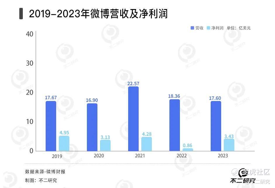 「不二研究」据微博年报发现:2023年,微博总营收17.6亿美元,同比下滑4%;经调整后的净利润5.921亿美元,同比下降1.5%。