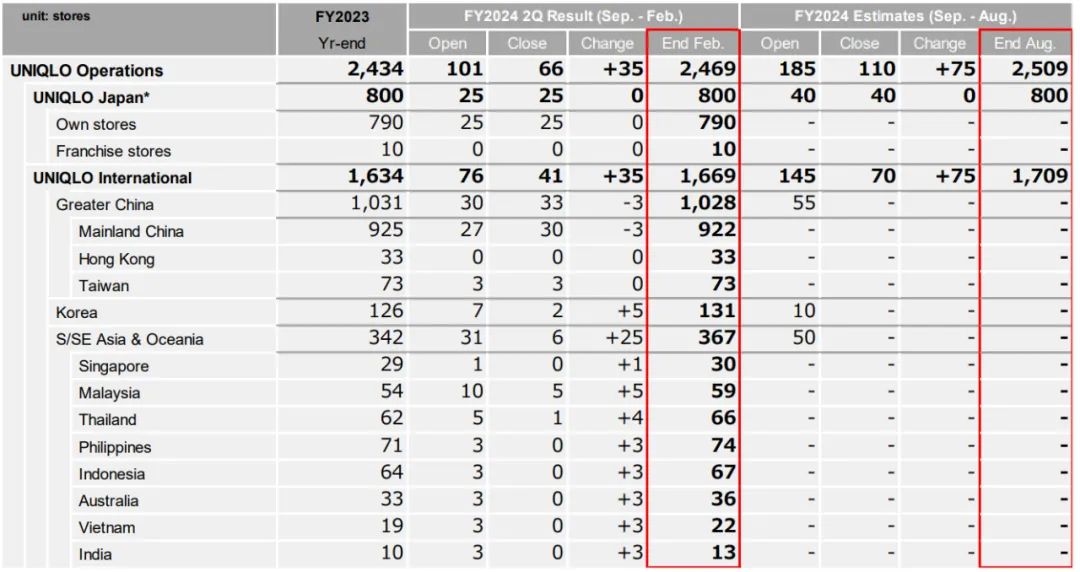Uniqlo优衣库东南亚市场上半年净增25间门店至367间,是所有市场净增门店最多的,期内该市场收入增加16.8%至2,728.18亿日元,正奋起直追中国市场。