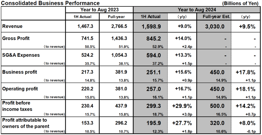 日本公司下调2024财年收入预期由30,500亿日元至30,300亿日元,增幅由10.2%相应下调至9.5%。