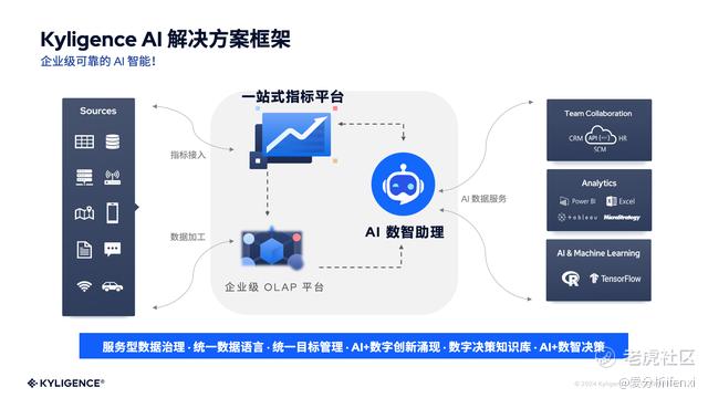 基于技术沉淀、创新产品和实践经验,Kyligence 正式发布了 AI 解决方案,将为企业级客户提供准确、可靠的 Data + AI 落地应用,通过对接企业已有的数据源,智能一站式指标平台将帮助企业实现统一的数据语言和目标管理,以及服务型的数据治理;其配备的 AI 数智助理将进一步降低业务用户使用数据的门槛,助力业务人员进行快速、准确的决策,为业务创新提供数据支持;此外,Kyligence 独具技术优势的企业级 OLAP 平台更将为企业大规模使用数据、推广 AI 应用提供坚实的技术底座。