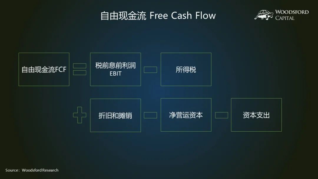 从这个公式里,我们就可以看出,自由现金流,衡量的是一家公司在盈利的基础上,扣除必要费用(比如税、营运资本和资产支出)后,所剩下的可供管理层自由支配的现金有多少。