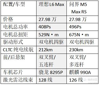 理想L6目前推出了2款增程车型,问界M5则推出了2款增程+1款纯电车型,