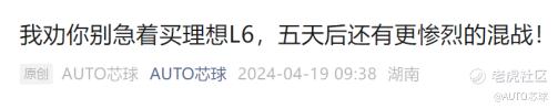 上周理想L6发布时,我就说过,别急着下订L6,几天后混战会更惨烈。