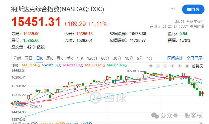 但是如果我们仔细去看一下纳斯达克综合指数,这波反弹也仅仅是在不断的下跌过程中喘了一口气,和反转完全扯不上关系。