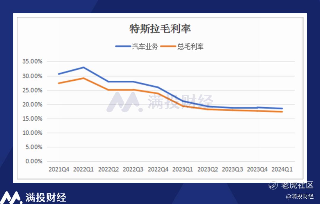 一季度特斯拉汽车业务的毛利润为32.12亿美元,同比下降24%,汽车业务的毛利率进一步降至18%,这是特斯拉连续6个季度汽车业务毛利率下滑。特斯拉的整体毛利率同样进一步下降至17%,去年同期为19%。