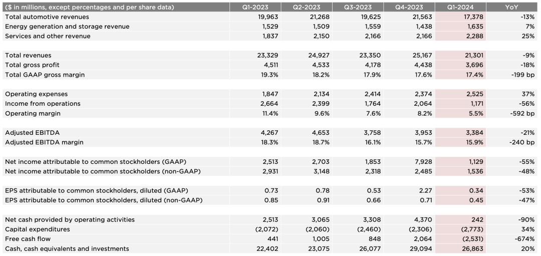 特斯拉的营收首次出现负增长,达到213亿美元,同比下降近9%,也是自2020年以来首次负增长。