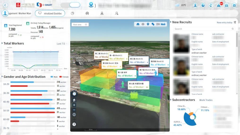 公司自主研发的C-SMART工程管理数字平台4.0为香港首个100%满足发展局4S(Smart、Site、Safety、System)要求的平台。相较之前版本,C-SMART4.0根据项目的实际需求不断迭代,在架构安全、功能体验和数据价值方面具有显著提升。全新的系统UI及交互功能将提升用户的使用体验,SaaS(平台即服务)化的系统架构降低40%的部署成本及80%的部署时间。同时,系统还能通过数据仓库、指标体系、BI(商业智能)广告牌的建设,实现人员、进度等维度的大数据分析,辅助管理决策。