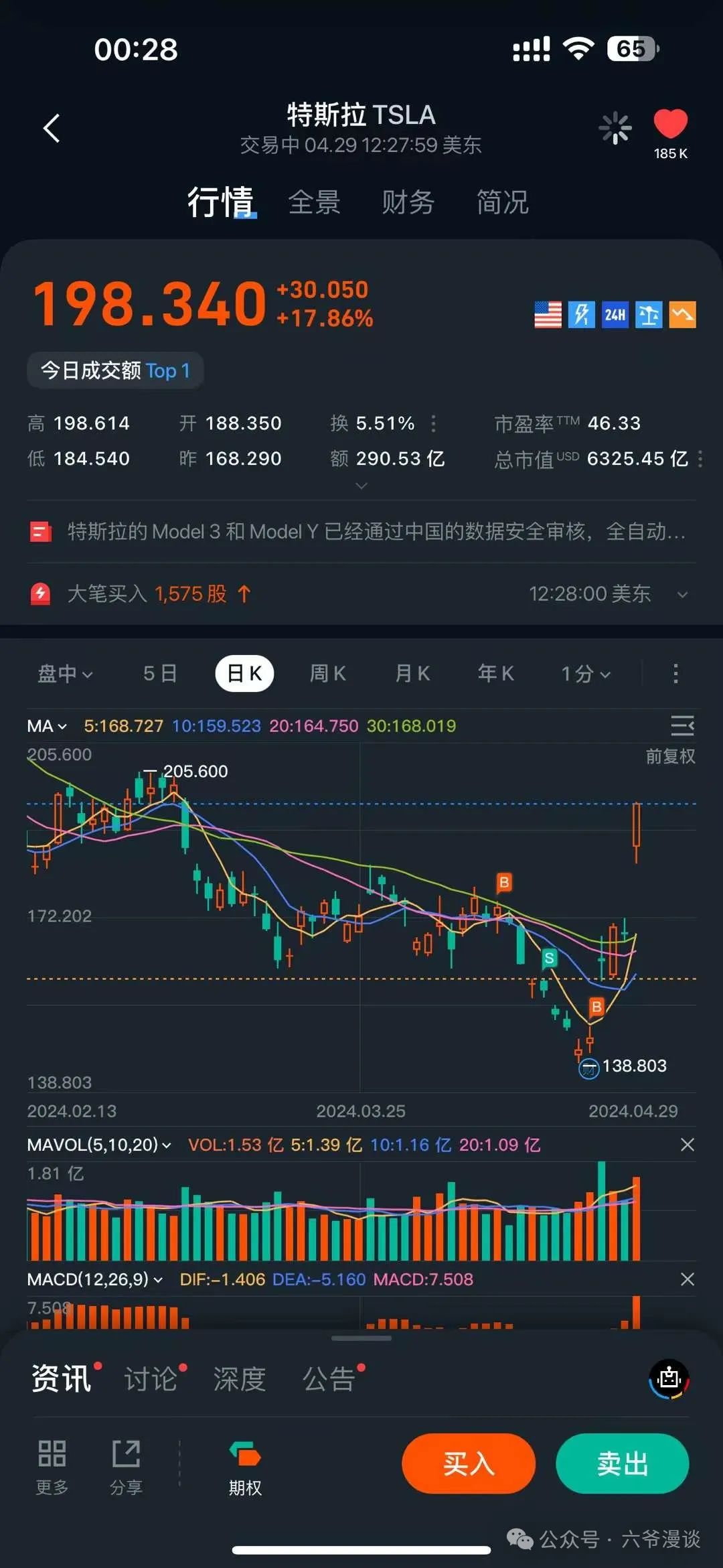 受FSD入华消息刺激,特斯拉大涨15% 。